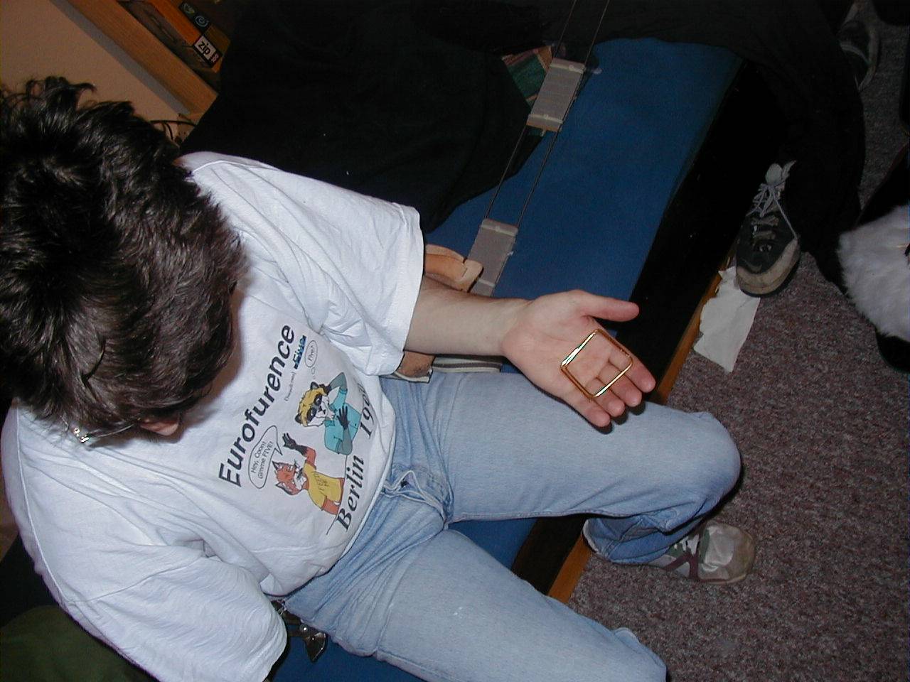 Schweifverbesserung Furvan meinte, ich sollte einfach ein Stück dicken Messingdraht zu einem Quadrat biegen und es an die belastete Stelle kleben. Das haben wir dann auch gemacht. Mit zwei Armaturenzangen und einem dicken Seitenschneider bewaffnet machten wir uns ans Werk. Die Bilder oben zeigen die einzelnen Schritte. Unten könnt ihr sehen, wie wir das Messingquadrat dann mit Heißkleber an der Krümmung des Schwanzansatzes befestigt und somit die Stabilität der Konstruktion erhöht haben.